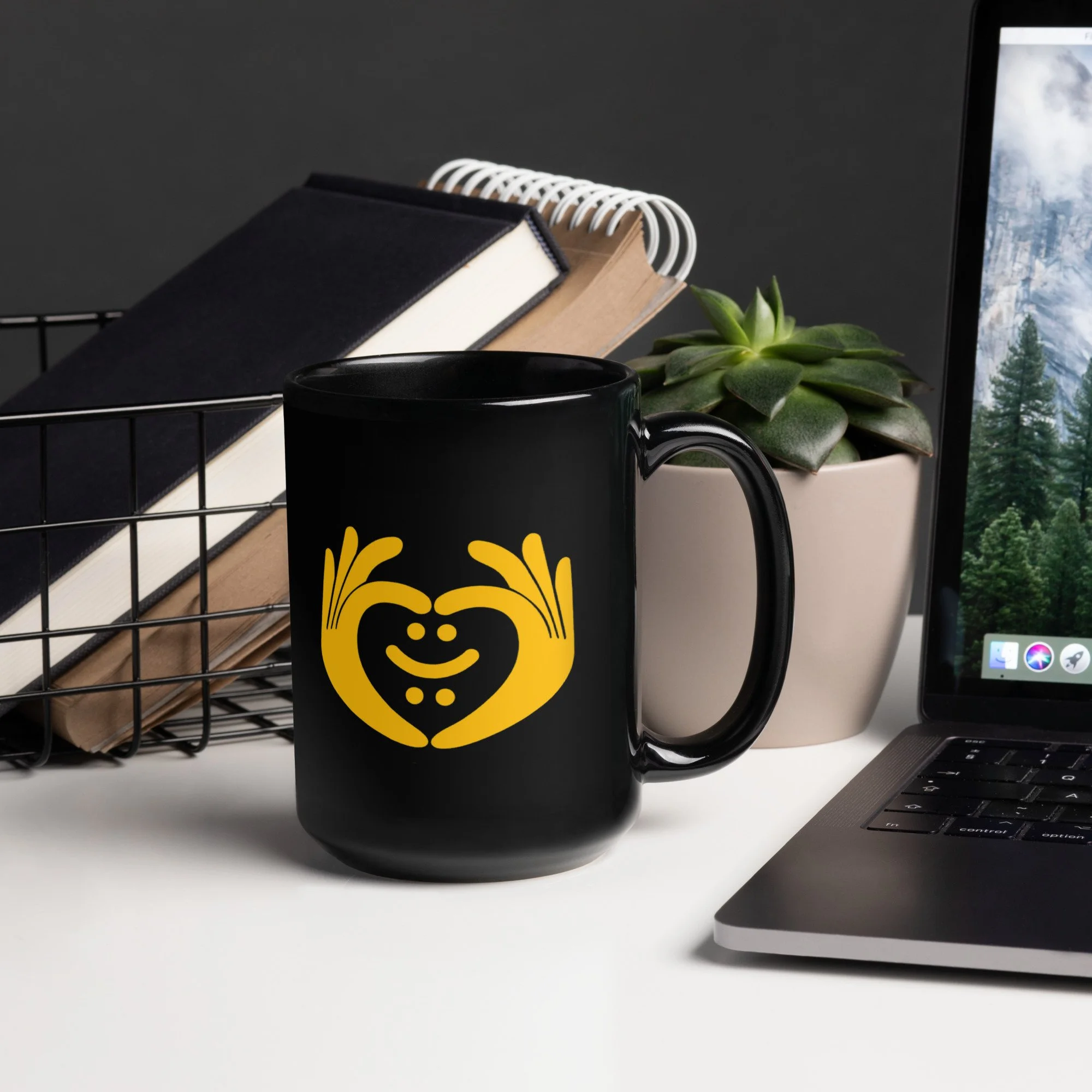 Shop › Black Thriving Mug with Yellow Happy Hands Logo Black Thriving Mug with Yellow Happy Hands Logo from £13.50 This cupboard essential is sturdy, sleek, and perfect for your morning java or afternoon tea. • Ceramic • 11 oz mug dimensions: height 3.85" (9.8 cm), diameter 3.35" (8.5 cm) • 15 oz mug dimensions: height 4.7" (12 cm), diameter 3.35" (8.5 cm) • Lead and BPA-free material • Glossy finish • Dishwasher and microwave safe This cupboard essential is sturdy, sleek, and perfect for your morning java or afternoon tea. • Ceramic • 11 oz mug dimensions: height 3.85" (9.8 cm), diameter 3.35" (8.5 cm) • 15 oz mug dimensions: height 4.7" (12 cm), diameter 3.35" (8.5 cm) • Lead and BPA-free material • Glossy finish • Dishwasher and microwave safe Size: Select Size 11 oz 15 oz Add To Cart Added!