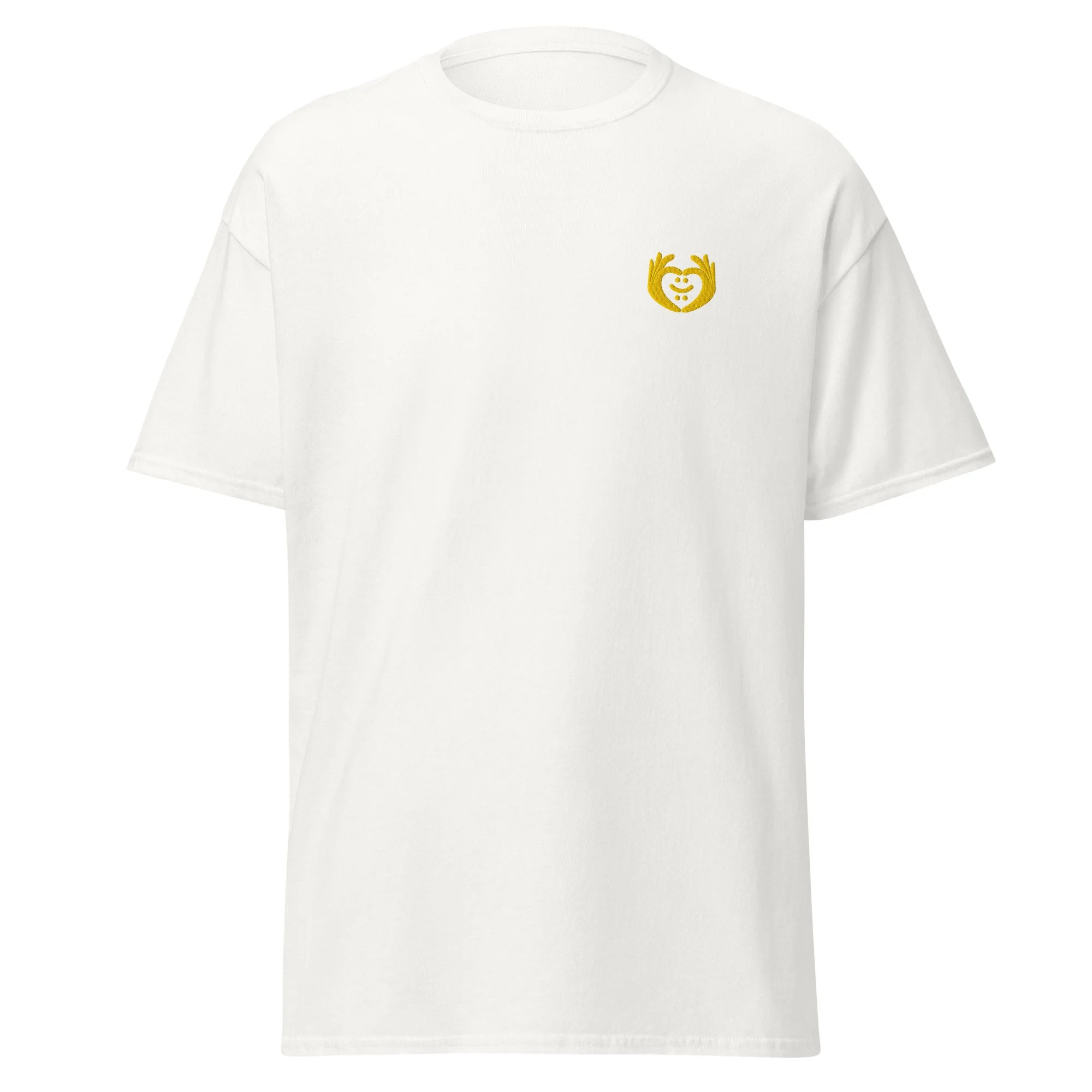 Embroidered Yellow Happy Hands Unisex Classic T-shirt - White